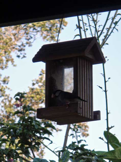 鳥小屋が作ってあって、そこにカラフルな鳥が集まってきて楽しいです。