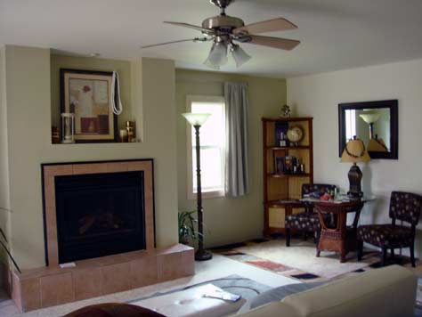 中に入ると最新式っぽい暖炉があります!さすがに火を点けるようなことはありませんが、テンションがあがります。