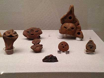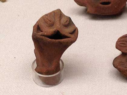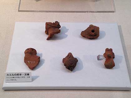 また、縁に把手状の顔が付いているのが特徴である甕が出土されていて、その把手がたいへん面白いです。